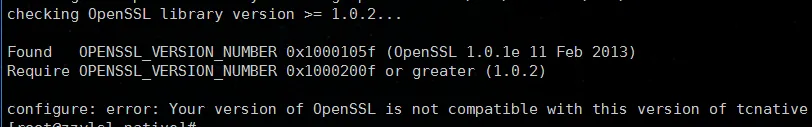 这种错误说明native需要openssl版本大于1.0.2 而目前系统版本是1.0.1e,所以需要更新版本,而yum源最新的openssl也就到1.0.1e版本,所以现在必须手动去openssl官网下载安装包进行编译安装,编译时编译到自定义目录和系统的openssl并存而且互不干扰,因为系统的openssl可能被一些软件所使用,这样一般安装在/usr/local/下便于管理
