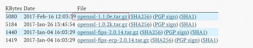 下载地址是:https://www.openssl.org/source/ ,这里下载最新版本的1.1.0e