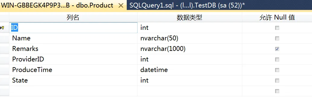 还是用商品表(Product)作为示例,表结构如下: