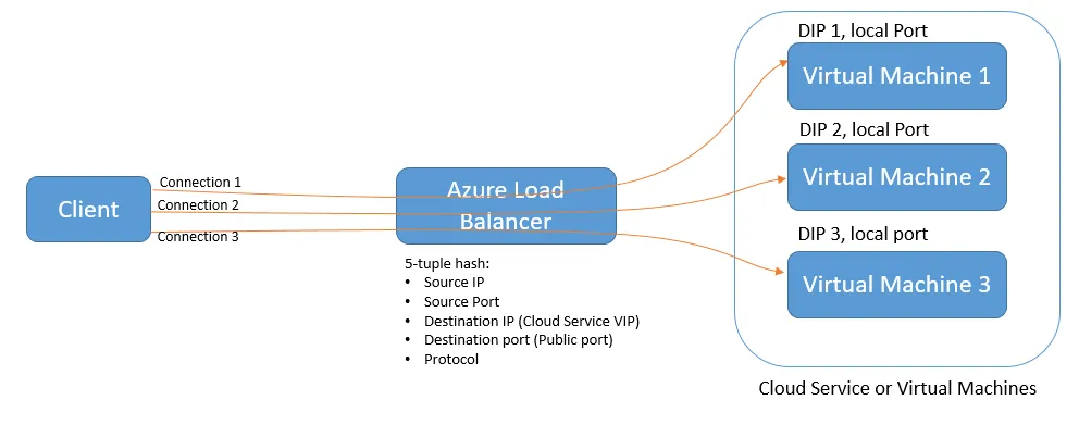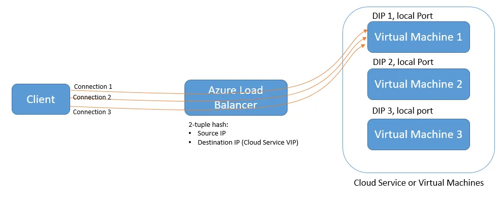 这样Azure Load Balancer可以保证绝对的负载均衡,如下图: