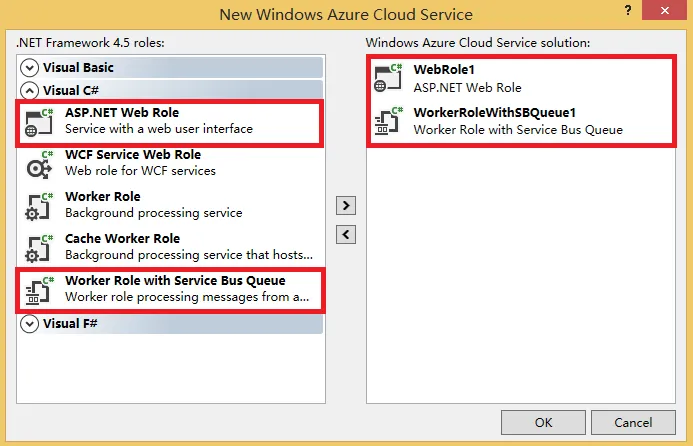 3.创建Cloud Project,添加Web Role和Service Bus Worker Role