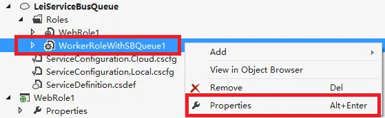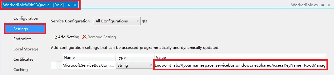 修改完毕后,我们需要修改ServiceBusWorkerRole的配置文件