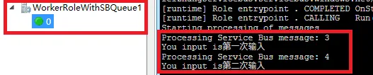 2.输入框输入的数据,会被后端的WorkerRoleWithSBQueue接受处理,并在后端显示