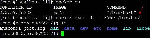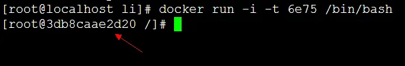 docker run -i -t 6e75 /bin/bash