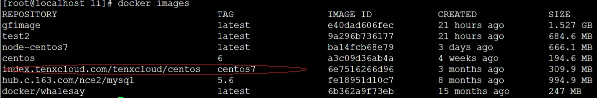 $ docker pull index.tenxcloud.com/tenxcloud/centos:centos7 #指定国内的镜像下载地址