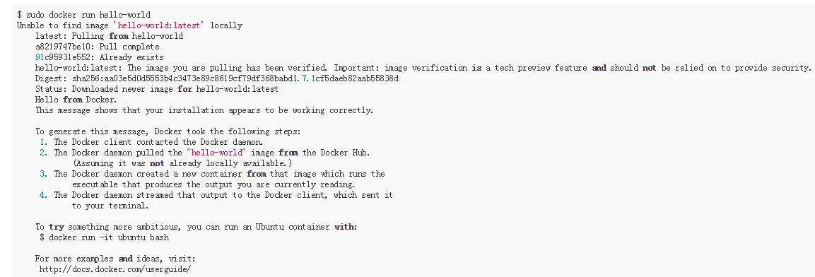 $ sudo docker run hello-world