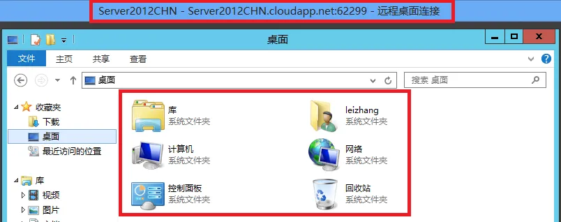 10.最后我们通过远程桌面连接,查看创建完成的,基于Windows Server 2012 中文版镜像的Azure Virtual Machine。如下图: