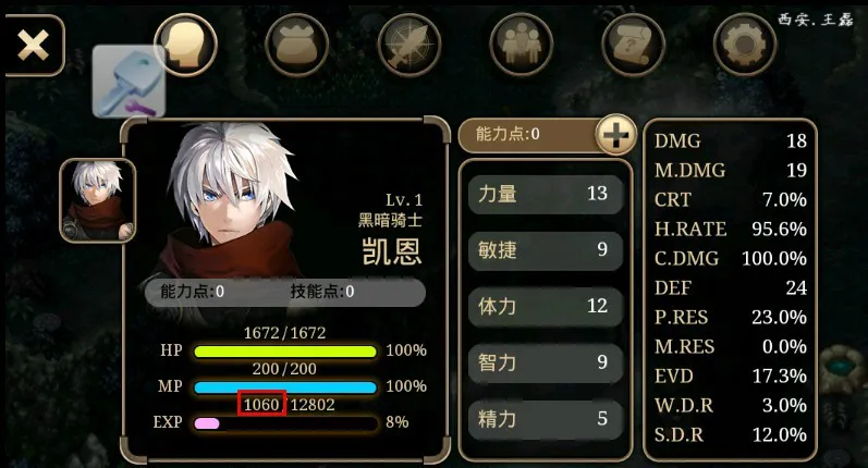 步骤2:选择好角色后打一只怪,这是自己的经验升值到1060,点击八门神器查询1060,参考下图。