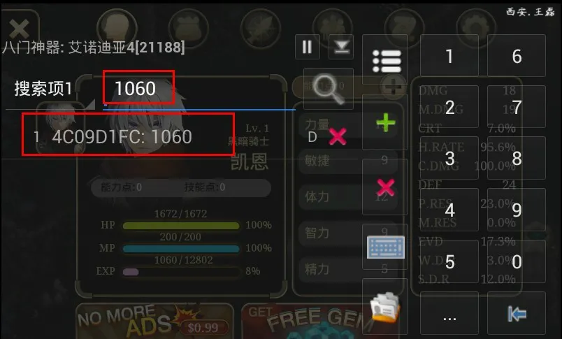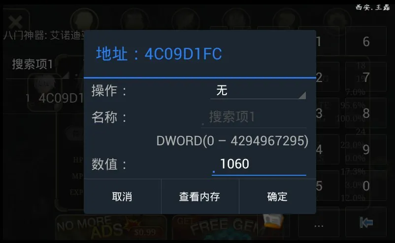 步骤3:查找之后有一项为1060的结果,修改次数值,便可升级,注意升级之后,进入游戏杀一只怪之后等级方显示效果,参考下图。