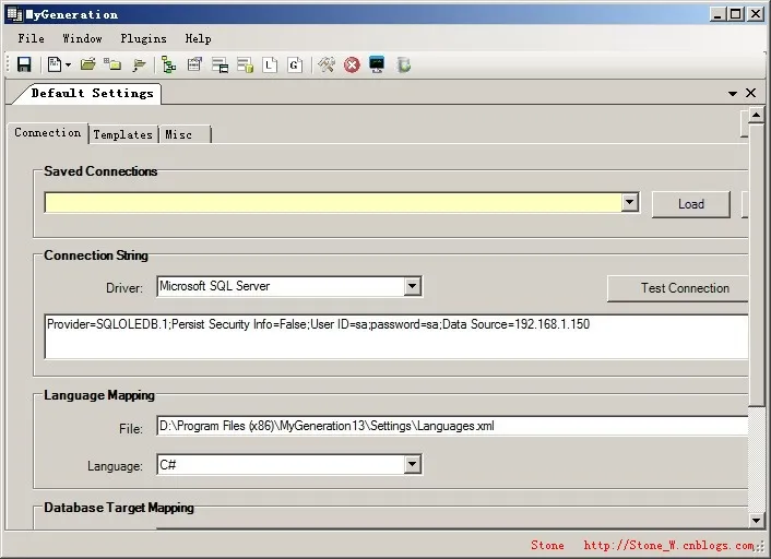 把字符串链接改为你自己的,然后点击Test Connection 如果弹出“Connection Successful!”就说明数据库链接成功,然后点击 Load 装载上,保存关掉窗口,点击运行如图: