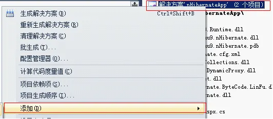 步骤三、添加项目引用与NHibernate(版本2.1.2)的dll文件。