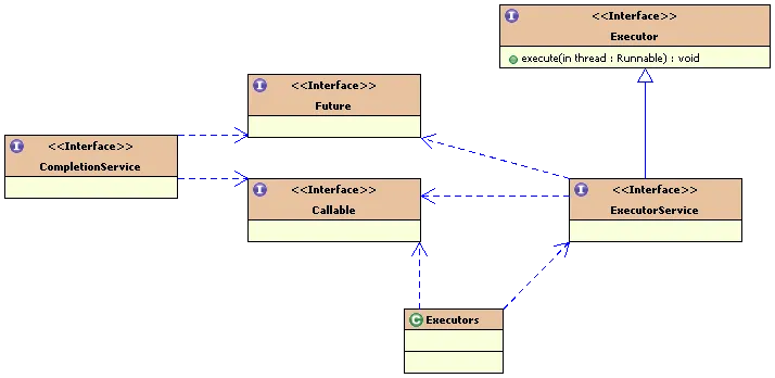 Java从1.5版本开始,为简化多线程并发编程,引入全新的并发编程包:java.util.concurrent及其并发编程框架(Executor框架)。 Executor框架是指java 5中引入的一系列并发库中与executor相关的一些功能类,其中包括线程池,Executor,Executors,ExecutorService,CompletionService,Future,Callable等。他们的关系为