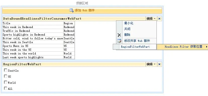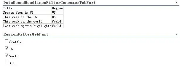 也就是说筛选WebParts的使用一般都是通过两个及以上的WebParts结合来使用的,SharePoint可以自动将这两个WebParts进行关联。