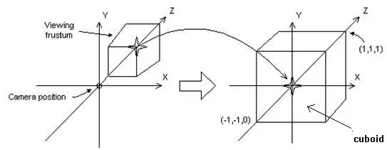 视口变换则是将这个cuboid中的物体变换到视口中,见下图。