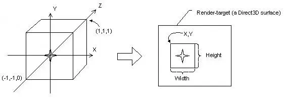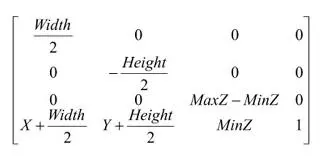 注:由上图知,视口的起点为(X, Y),宽高分别为Width和Height,x轴向右为正,y轴向下为正,y轴的方向与三维坐标正好相反。视口是一个2D平面,但是在viewport变换中,Z坐标也是跟着变换的,只是在这个图中没有体现。