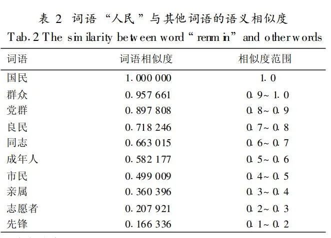 定义1 语义相似度。给定两个词汇w1和w2,它们之间的相似度通过