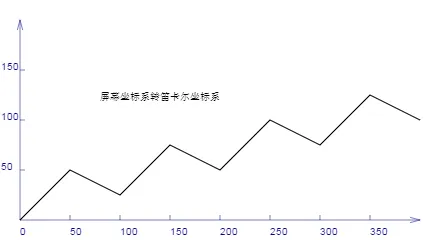 <!DOCTYPE html> <html lang="utf-8"> <meta http-equiv="Content-Type" content="text/html; charset=utf-8"/> <head> <title>笛卡尔坐标系</title> </head> <body onload="draw()"> <canvas id="myCanvus" width="440px" height="240px" style="border:1px dashed black;"> 出现文字表示你的浏览器不支持HTML5 </canvas> </body> </html> <script type="text/javascript"> <!-- function draw(){ var canvas=document.getElementById("myCanvus"); var canvasWidth=440; var canvasHeight=240; var context=canvas.getContext("2d"); context.fillStyle = "white"; context.fillRect(0, 0, canvasWidth, canvasHeight); context.strokeStyle = "black"; context.fillStyle = "black"; context.save(); // 进行坐标变换:把原点放在左下角,东方为X轴正向,北方为Y轴正向 var offset=20;// 偏移值,用来画坐标轴 context.save(); context.translate(0+offset,canvasHeight-offset); context.rotate(getRad(180)); context.scale(-1,1); drawAxisX(context); drawAxisY(context); // 画折线 context.beginPath(); context.moveTo(0, 0); context.lineTo(50, 50); context.lineTo(100, 25); context.lineTo(150, 75); context.lineTo(200, 50); context.lineTo(250, 100); context.lineTo(300, 75); context.lineTo(350, 125); context.lineTo(400, 100); context.stroke(); context.closePath(); context.restore(); context.fillText("屏幕坐标系转笛卡尔坐标系",100,100); } function drawAxisX(ctx){ ctx.save(); ctx.lineWidth=0.5; ctx.strokeStyle='navy'; ctx.fillStyle='navy'; // 画轴 ctx.beginPath(); ctx.moveTo(0, 0); ctx.lineTo(400, 0); ctx.stroke(); ctx.closePath(); ctx.beginPath(); ctx.moveTo(400-Math.cos(getRad(15))*10, Math.sin(getRad(15))*10); ctx.lineTo(400, 0); ctx.lineTo(400-Math.cos(getRad(15))*10, -Math.sin(getRad(15))*10); ctx.stroke(); ctx.closePath(); // 画刻度 var x,y; y=5; for(x=50;x<400;x+=50){ ctx.beginPath(); ctx.moveTo(x, 0); ctx.lineTo(x, y); ctx.stroke(); ctx.closePath(); } // 写文字 for(x=0;x<400;x+=50){ ctx.save(); ctx.scale(1,-1); ctx.fillText(x,x,y+10); ctx.restore(); } ctx.restore(); } function drawAxisY(ctx){ ctx.save(); ctx.lineWidth=0.5; ctx.strokeStyle='navy'; ctx.fillStyle='navy'; // 画轴 ctx.beginPath(); ctx.moveTo(0, 0); ctx.lineTo(0, 200); ctx.stroke(); ctx.closePath(); ctx.beginPath(); ctx.moveTo(Math.sin(getRad(15))*10, 200-Math.cos(getRad(15))*10); ctx.lineTo(0, 200); ctx.lineTo(-Math.sin(getRad(15))*10, 200-Math.cos(getRad(15))*10); ctx.stroke(); ctx.closePath(); // 画刻度 var x,y; x=5; for(y=50;y<200;y+=50){ ctx.beginPath(); ctx.moveTo(x, y); ctx.lineTo(0, y); ctx.stroke(); ctx.closePath(); } // 写文字 x=-19; for(y=50;y<200;y+=50){ ctx.save(); ctx.scale(1,-1); ctx.translate(0,-200); ctx.fillText(200-y,x,y); ctx.restore(); } ctx.restore(); } function getRad(degree){ return degree/180*Math.PI; } //--> </script>