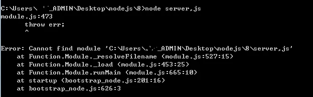 如果执行>Node xx.js时,xx,js找不到的话,报出的错误是Error:Cannot find module 'c:/test/xx,js'