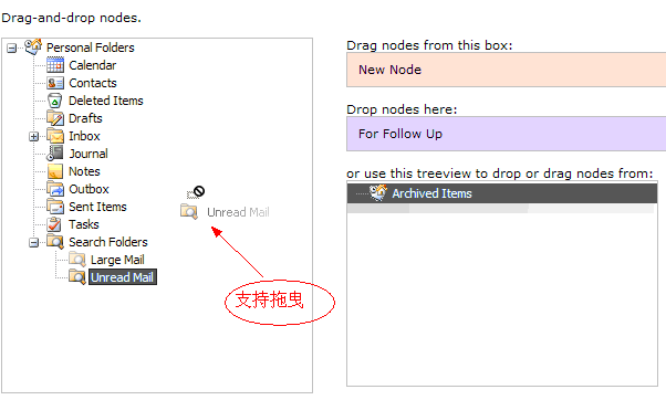 提供先进的拖放式功能(在树状,几个treeviews之间之间,或treeviews和自定义HTML对象)。