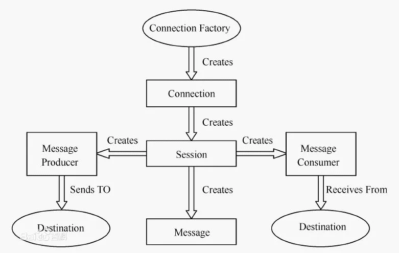 生产者和消费者对象由Session对象创建,用于发送和接收消息。