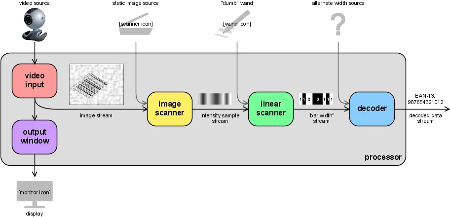 整形电路的脉冲数字信号经译码器译成数字、字符信息.它通过识别起始、终止字符来判别出条码符号的码制及扫描方向;通过测量脉冲数字电信号0、1的数目来判别出条和空的数目.通过测量0、1信号持续的时间来判别条和空的宽度.这样便得到了被辩读的条码符号的条和空的数目及相应的宽度和所用码制,根据码制所对应的编码规则,便可将条形符号换成相应的数字、字符信息,通过接口电路送给计算机系统进行数据处理与管理,便完成了一维条码辨读的全过程。