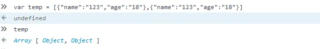 var temp = [{"name":"123","age":"18"},{"name":"123","age":"18"}]