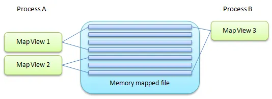 2)若要使用一个内存映射文件,则必须创建该内存映射文件的完整视图或部分视图。还可以创建内存映射文件的同一部分的多个视图,进而创建并发内存。为了使两个视图能够并发,必须基于同一内存映射文件创建这两个视图。