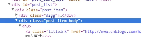 相比HtmlAgilityPack提供的层级式解析和Xpath方式的解析比起来,CSS选择器的更为简单快捷,这里以解析博客园的首页标题为例,首先用开发者工具定位标题,可以看到其HTML结构的方式如下: