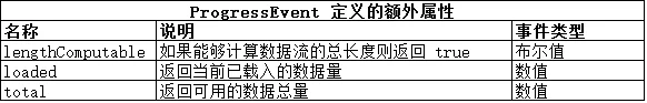 调度这些事件时,浏览器会对 readystatechange 事件使用常规的 Event 对象,对其他事件则使用 ProgressEvent 对象。 ProgressEvent 对象定义了 Event 对象的所有成员,并增加了下图中介绍的这些成员: