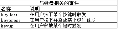 键盘事件由按键操作触发。下表展示了这一类事件。