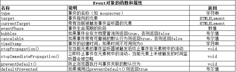 addEventListener 方法的优点在于它让你能够访问某些高级事件特性。下表介绍了Event对象的成员。