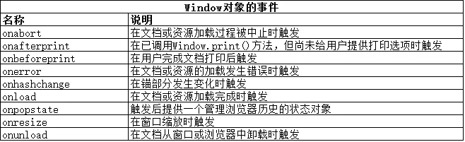 Window对象定义了多种多样的事件,下表对其进行了介绍。可以通过body元素处理其中一些事件,但浏览器度这种方法 支持程度不太一致,一般而言使用Window对象会更可靠。