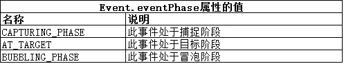 在注册事件监听器时启动捕捉事件并不能停止针对元素自身的事件。此例中,p元素占据了浏览器屏幕空间,它同样会响应mouseover事件。为了避免这一点,进行了检查,确保只有在处理捕捉阶段的事件(只针对后代元素的事件,处理此事件完全是因为注册了启用捕捉的监听器)时才会应用样式改动。eventPhase属性会返回下表里展示的三个值之一。它们代表了事件生命周期的三个阶段。