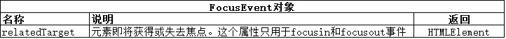 FocusEvent对象代表了这些事件,相对于Event对象的核心功能,它还添加了下表里展示的属性。