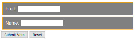 <!DOCTYPE html> <html lang="en"> <head> <meta charset="UTF-8"> <title>使用键盘焦点事件</title> <style> p {background: gray;color: white;padding: 10px;margin: 5px;border: thin solid orange;} </style> </head> <body> <form> <p> <label for="fave">Fruit: <input autofocus id="fave" name="fave" /></label> </p> <p> <label for="name">Name: <input id="name" name="name" /></label> </p> <button type="submit">Submit Vote</button> <button type="reset">Reset</button> </form> <script type="application/javascript"> function handleFocusEvent(e){ if (e.type == "focus"){ e.target.style.background = "lightgray"; e.target.style.border = "thick double red"; }else { e.target.style.removeProperty("background"); e.target.style.removeProperty("border"); } } var inputElems = document.getElementsByTagName("input"); for(var i=0;i<inputElems.length;i++){ inputElems[i].onfocus = handleFocusEvent; inputElems[i].onblur = handleFocusEvent; } </script> </body> </html>