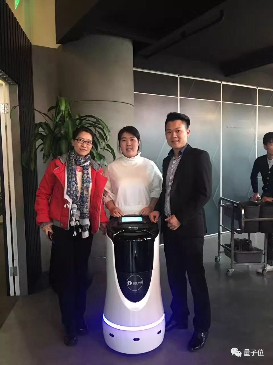 支涛:后面那台叫润,它的英文名字是Run,就是奔跑的意思。它们像人类一样,是拿着它的应聘书去求职的。酒店会面试它,如果面试成功了会留下它,然后每个月给它发一份薪水。
