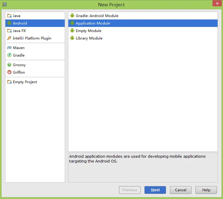 2.由于IntelliJ IDEA本身带有Android开发插件,所以可以直接创建Android项目