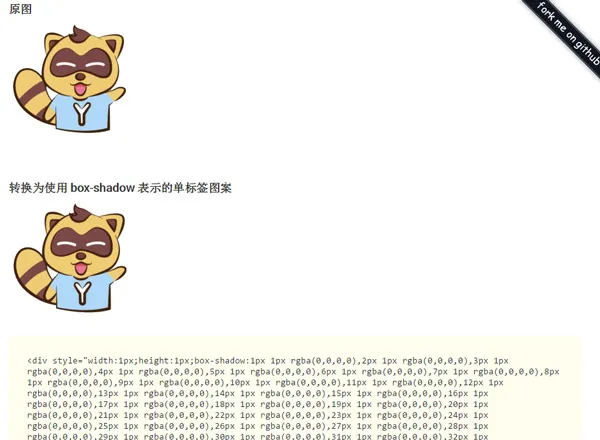 为此,我倒腾了许久,写了这么一个小插件,可以将任意图片转化为由 box-shadow 表示的单个 div 标签。
