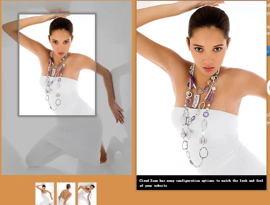 Cloud Zoom是一个jQuery插件图像缩放,类似的替代产品,如魔法变焦。相比流行jQZoom插件,云变焦更小,有更多的功能和更健壮的跨浏览器的兼容性。