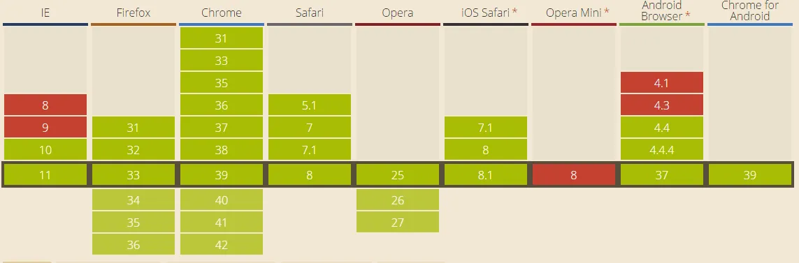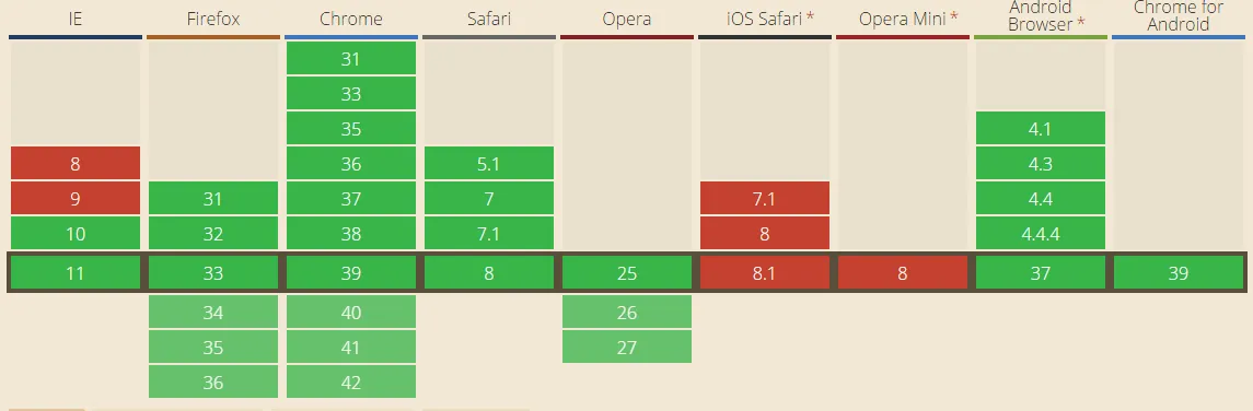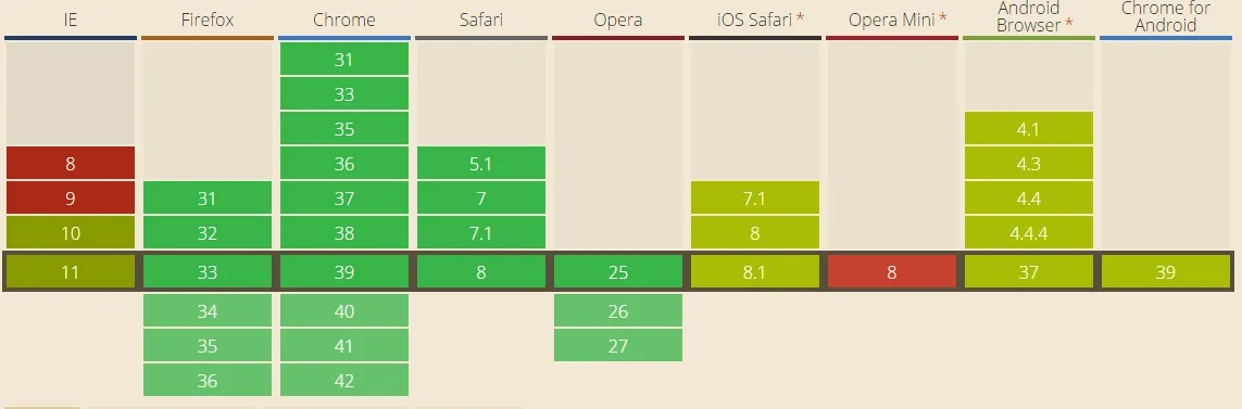 | Input type | IE | Firefox | Opera | Chrome | Safari |