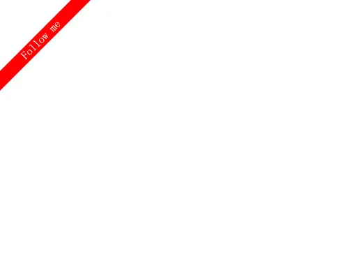 1 <!DOCTYPE html> 2 <html> 3 <head> 4 <title></title> 5 <meta http-equiv="Content-Type" content="text/html;charset=utf-8"> 6 <style> 7 .demo{ 8 display: inline-block; 9 height: 20px; 10 width: 200px; 11 background: #f00; 12 text-align: center; 13 margin-top: 40px; 14 margin-left: -45px; 15 text-decoration: none; 16 color:#fff; 17 -webkit-transform: rotate(-45deg); 18 -moz-transform: rotate(-45deg); 19 -ms-transform: rotate(-45deg); 20 -o-transform: rotate(-45deg); 21 transform: rotate(-45deg); 22 } 23 </style> 24 </head> 25 <body> 26 <a class="demo" href="javasript:;">Follow me</a> 27 </body> 28 </html>
