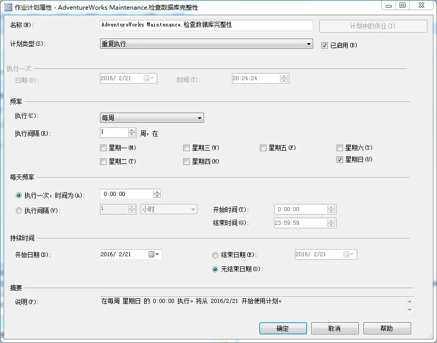 点击确定,点击底部计划的修改按钮。你将看到一个标准的作业调度对话框,如插图5所示。在本例中,按默认设置。
