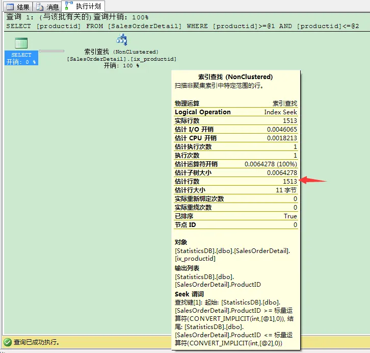 SQL Server优化器如何使用直方图来做基数计算(cardinality estimation )呢?我们看下下面查询的执行计划,点击工具栏的显示包含实际的执行计划。
