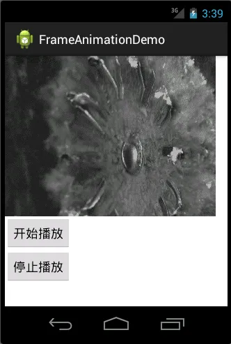 下面通过一个简单的Demo,来演示如何播放一个XML定义的逐帧动画,布局很简单,一个ImageView来承载逐帧动画,两个Button控制播放与停止: