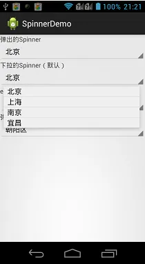 - android:spinnerMode:列表显示的模式,有两个选择,为弹出列表(dialog)以及下拉列表(dropdown),如果不特别设置,为下拉列表。。