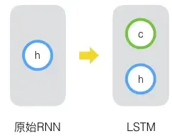 长短时记忆网络的思路比较简单。原始RNN的隐藏层只有一个状态,即h,它对于短期的输入非常敏感。那么,假如我们再增加一个状态,即c,让它来保存长期的状态,那么问题不就解决了么?如下图所示: