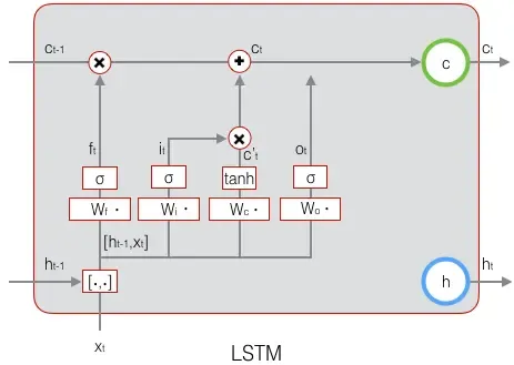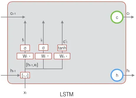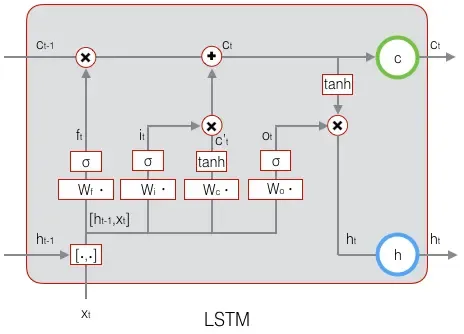 接下来,我们要描述一下,输出h和单元状态c的具体计算方法。