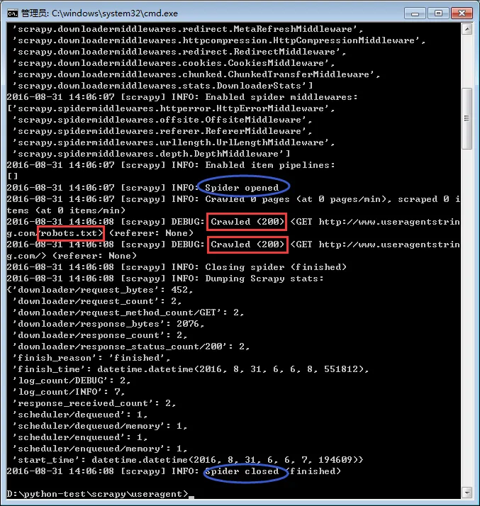 $ scrapy startproject useragent