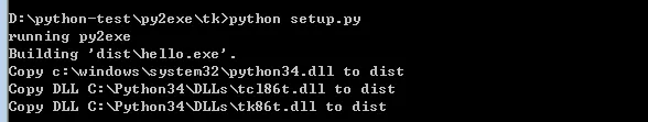# setup.py from distutils.core import setup import py2exe import sys #this allows to run it with a simple double click. sys.argv.append('py2exe') py2exe_options = { "compressed": 1, "optimize": 2, "ascii": 0, "bundle_files": 2, # 修改:2(打包,但不打包Python解释器) setup( name = 'tk demo', version = '1.0', windows = ['hello.py',], # 修改:windows zipfile = None, options = {'py2exe': py2exe_options} )