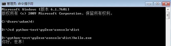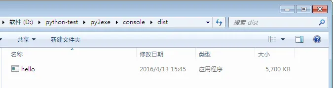 可以发现dist目录下生成了一个hello.exe文件和另外几个dll文件